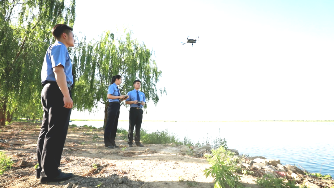 河北省检察院雄安新区分院检察干警利用无人机勘查周边环境。
