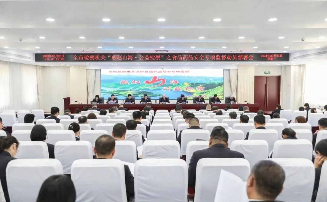 3月25日,沧州市检察院召开全市检察机关“燕赵山海·公益检察”之食品药品安全专项监督动员部署会。会议要求,全市检察机关要全力以赴、主动出击,以更高标准、更大力度、更实举措推动专项监督再创佳绩,为健康沧州建设提供有力法治保障。