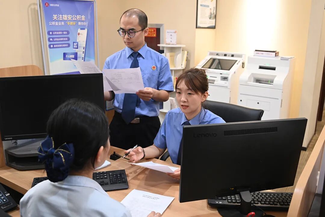 容城县检察院检察官黄嘉鑫(左)与检察官助理胡菲(右)来到某银行调取涉案银行账户开立情况等证据材料,并核实确认涉案资金冻结情况。