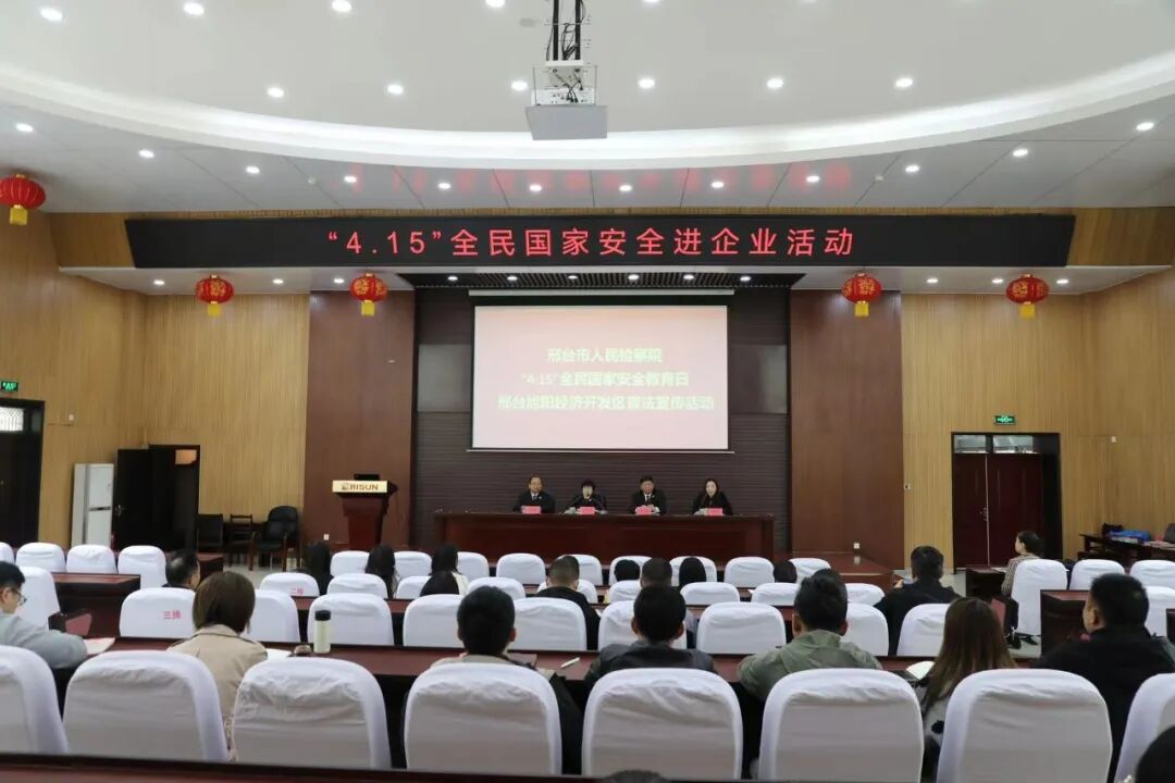 4月13日,邢台市检察院联合襄都区检察院走进河北邢台旭阳经济开发区、家乐园集团,通过国家安全专题宣讲会、发放宣传手册等方式,推动依法维护国家安全观念深入人心。