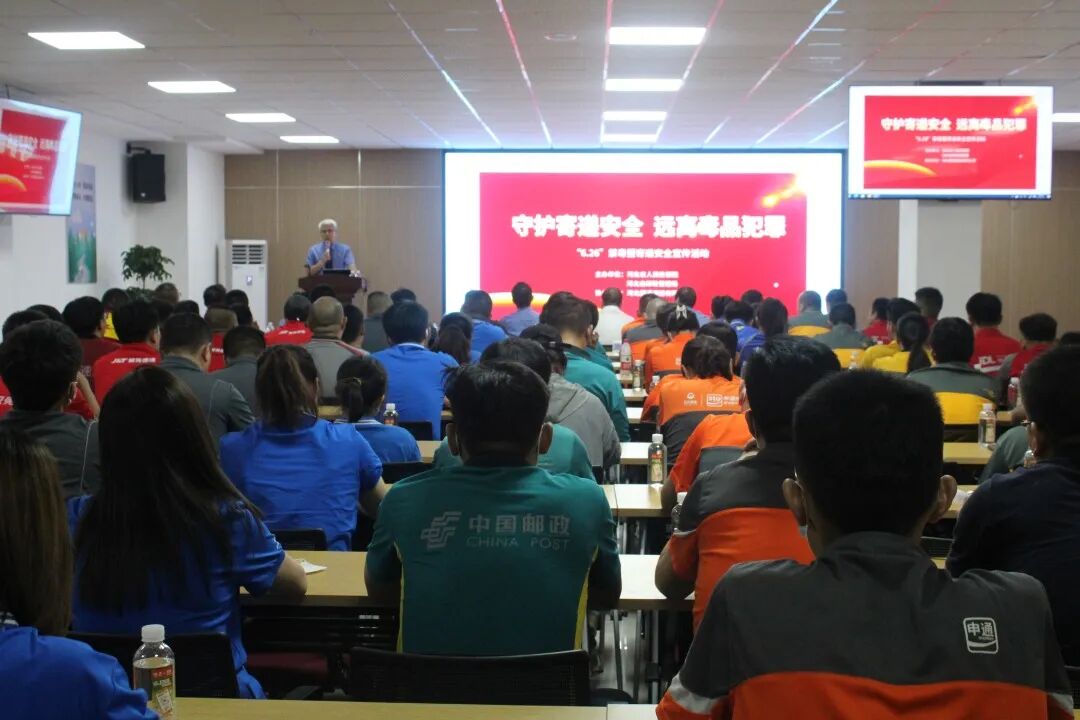 2023年6月26日,是第36个国际禁毒日。为深入贯彻落实最高检“七号检察建议”,进一步加强寄递行业规范管理,提升快递从业人员的安全意识和法治意识,筑牢全省寄递安全“防火墙”,6月25日,省检察院、省邮政管理局在河北圆通速递有限公司联合开展了以“守护寄递安全,远离毒品犯罪”为主题的禁毒暨平安寄递法治宣传活动。圆通、邮政、顺丰、京东等11家企业共计100余人参加活动。