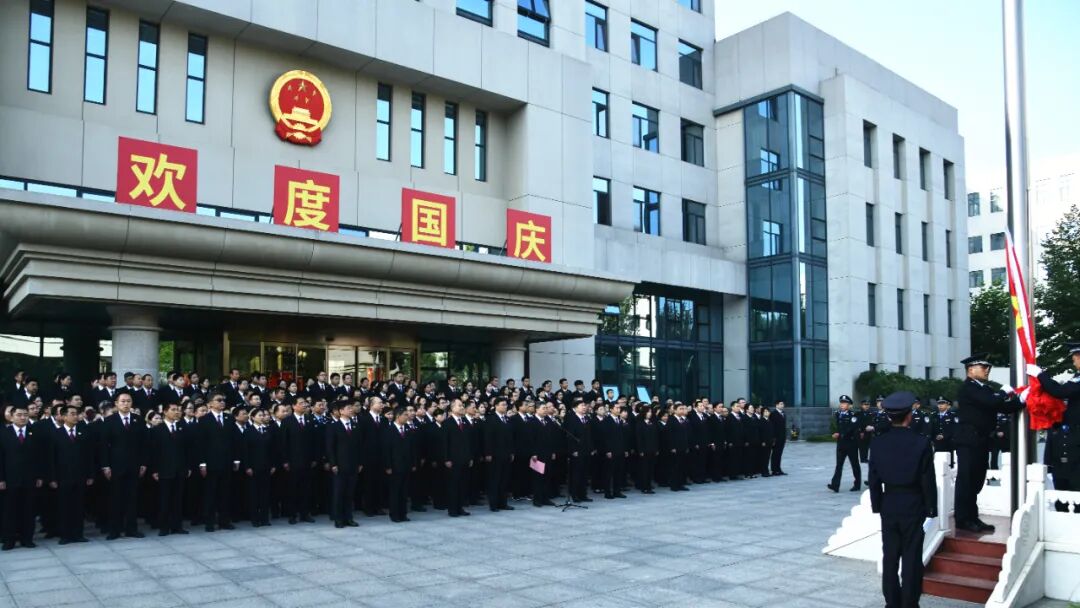 上午9时,升国旗仪式正式开始,护旗队员昂首挺胸、意气风发,迈着铿锵有力的步伐,护卫着鲜艳的五星红旗走向升旗台。随后,伴着雄壮的国歌声,五星红旗冉冉升起,全体检察人员庄严肃立,向国旗行注目礼,并齐声高唱国歌,表达对祖国的深情热爱。