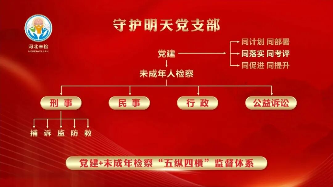 未成年人是祖国的未来、民族的希望,未检工作是一项关系万千家庭幸福安宁和社会和谐稳定的民心工程。近年来,省检察院第九检察部党支部坚持讲政治与抓业务有机统一,做到党员在哪里、党建就做到哪里,未检业务在哪里、党建就跟进到哪里,依托革命圣地西柏坡、唐山李大钊纪念馆和保定涞源英雄王二小、白洋淀小兵张嘎等丰富的红色资源,自觉传承红色基因,推动党建与未检业务深度融合,以检察司法保护主动融入和促进其他“五大保护”,以扎扎实实的党建工作推进未检工作高质量发展,为未成年人健康成长提供有力司法保障。其间,开展的盲盒治理工作被写入最高检工作报告;2022年以来,4个案例被评为全国典型案例,1个案例被评为全国精品刑事抗诉案件,1项课题被最高检第九检察厅评为全国优秀调研成果;省检察院第九检察部党支部获得第七届全国维护妇女儿童权益先进集体。