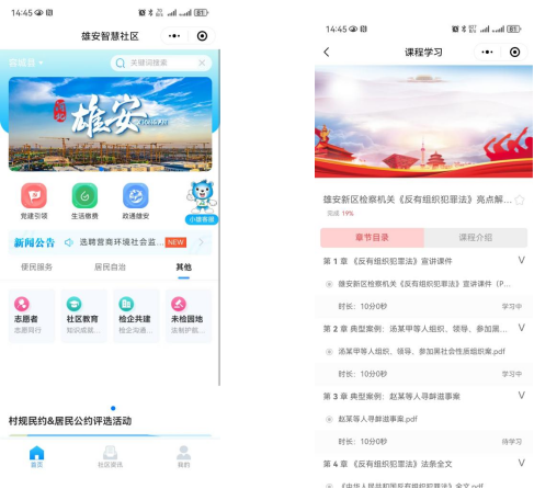 “检察机关上传的资料有讲解、有法条、有案例,内容丰富且通俗易懂,居民可以随时下载查阅学习反有组织犯罪法,普法效果很好。”……为深入推进平安建设,持续加强预防和惩治有组织犯罪,推动常态化扫黑除恶斗争走深走实,省检察院雄安新区分院依托雄安“智慧之城”建设,制作反有组织犯罪法宣讲视频及PPT、反有组织犯罪法六大亮点解读H5,与检察机关依法惩治涉网络黑恶犯罪典型案例共同上传至雄安智慧社区系统及智慧社区小程序,进行常态化宣传,受到社区工作人员认可。