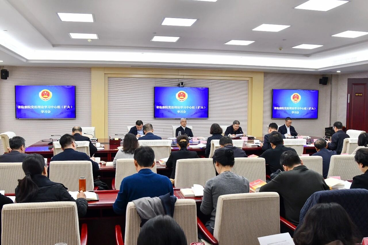 省检察院党组理论学习中心组成员参会,二级巡视员、二级高级检察官,驻院纪检监察组,机关各内设机构负责人列席学习会。