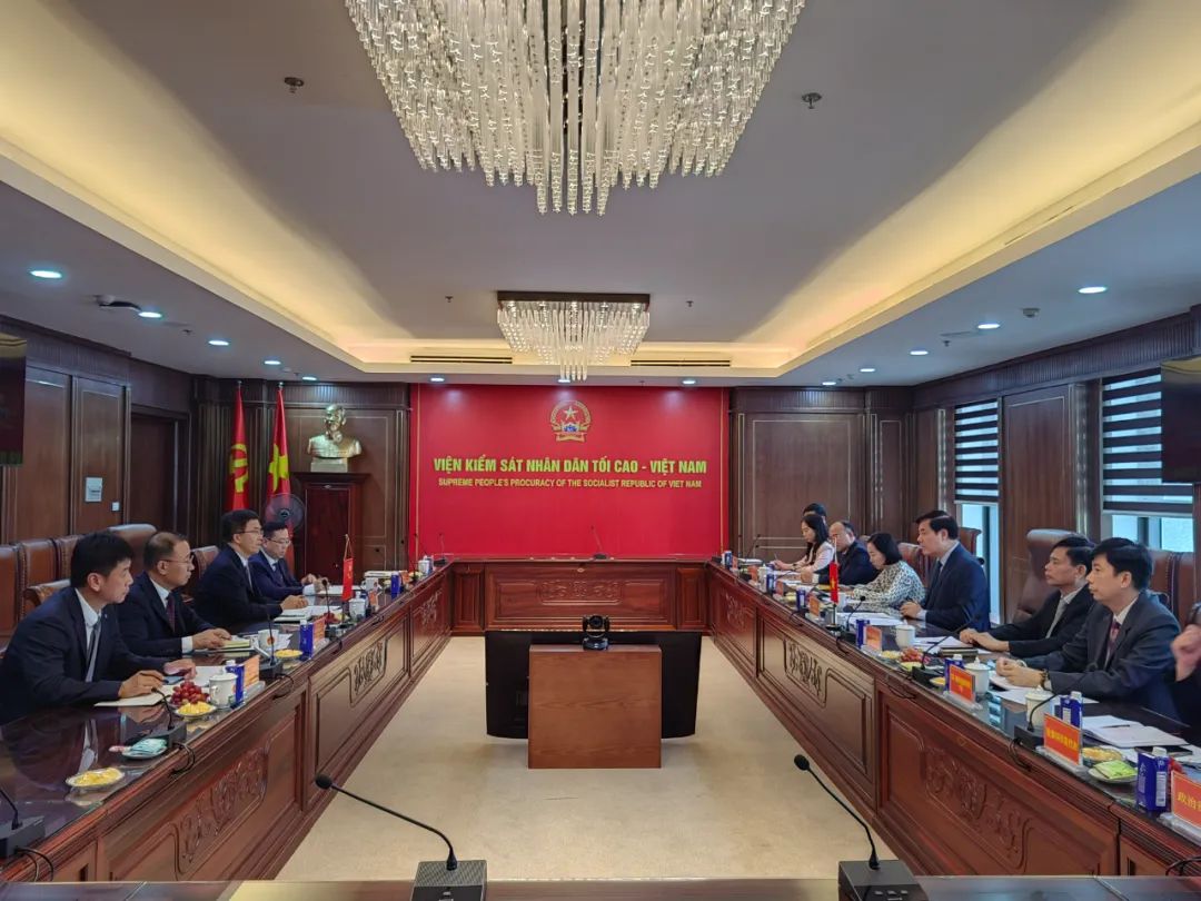 应泰国总检察长办公室国际事务司、越南最高人民检察院国际合作与刑事司法协助局邀请,6月8日至15日,省检察院检察长董开军率河北检察代表团对泰国、越南检察机关进行了访问。期间,代表团赴泰国总检察长办公室、泰国国家检察官博物馆,越南最高人民检察院、河内市人民检察院、胡志明市人民检察院、广宁省人民检察院,介绍了中国法治建设、检察制度及河北检察工作情况,了解了泰国、越南检察机关基本情况、工作特点,并就打击跨国犯罪、公益诉讼检察、检察官培训、新技术在司法领域应用等内容进行了交流。
