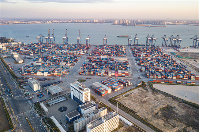 2025年11月21日在海南自贸港重点园区——洋浦经济开发区拍摄的洋浦国际集装箱码头(无人机照片)。新华社记者 蒲晓旭 摄