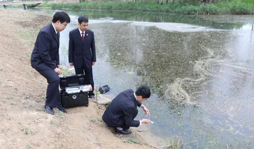 保定市莲池区检察院干警利用快检设备进行取水采样。