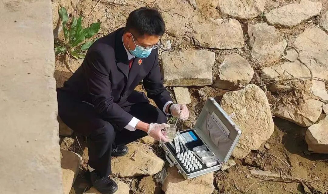 秦皇岛北戴河新区检察院干警利用快速检测设备对水质进行检测。