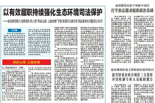 答:围绕护航美丽河北建设目标任务,坚持问题导向、办案导向、效果导向,努力实现生态环境和资源保护领域公益诉讼办案力度持续加大,办案质量持续提升,办案效果持续增强,环境有价、损害赔偿的恢复性司法理念得以全面有效贯彻落实,行政机关依法全面有效履行生态环境和资源保护工作职责,生态环境和资源保护的社会氛围进一步浓厚。举全省检察之力,以专项监督推动公益诉讼检察向纵深发展,助力推进天蓝、地绿、水秀的美丽河北建设。