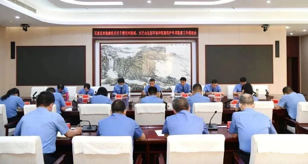 5月19日,石家庄市检察院召开滹沱河流域、太行山生态环境和资源保护专项监督工作推进会。13个基层检察院分别汇报了本地滹沱河流域、太行山生态环境和资源保护工作开展情况及下步工作谋划,介绍了滹沱河流域、太行山公益诉讼案件办理经验及重点难点问题,并就线索发现、信息共享、联合行动及机制构建等进行研讨。