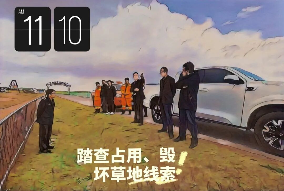林(草)长办公室、自然资源和规划局实地踏查县域内占用草地案件线索,检察官现场监督。