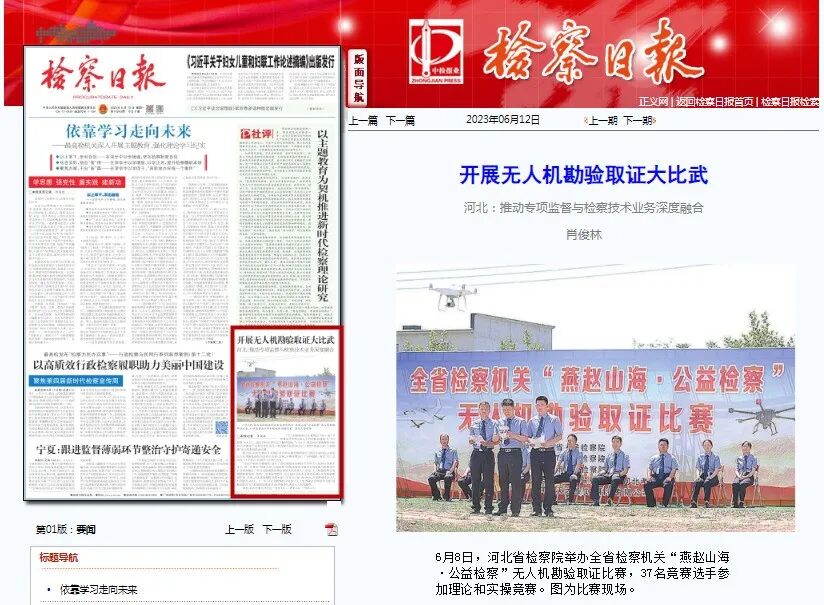 “设定严格的比赛规则,是为了更好地提高竞赛选手利用无人机取证的技术水平,进一步推动‘燕赵山海·公益检察’护航美丽河北建设专项监督与检察技术业务深度融合。”河北省检察院检察信息技术部负责人介绍说,无人机勘验取证有着勘察视角高、范围广、效率高等特点,在公益诉讼技术支持体系建设中发挥着重要作用。目前,河北省检察机关技术部门共有无人机150余台,有驾驶资格的无人机驾驶员109人。下一步,河北省检察机关将加大无人机驾驶员资质培养力度,按照国家对无人机规范管理要求,培养更多优秀的无人机驾驶员。