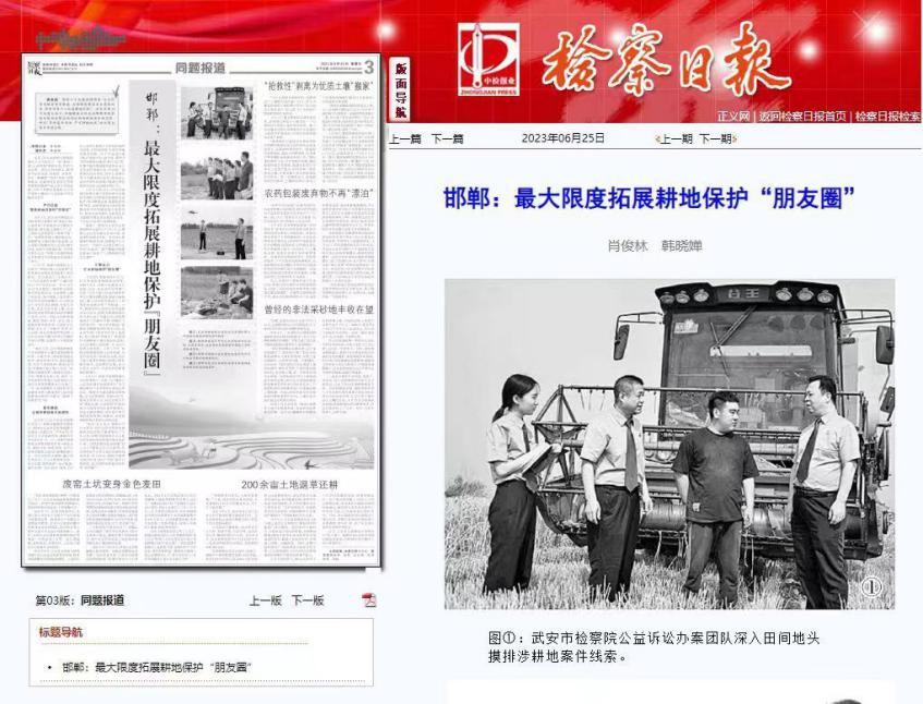 《检察日报》整篇报道邯郸市检察机关耕地保护相关做法。