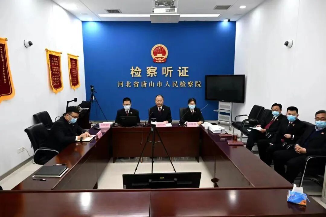 2022年11月,一审法院开庭审理此案,唐山市检察院检察官在该院检察听证室远程出庭。