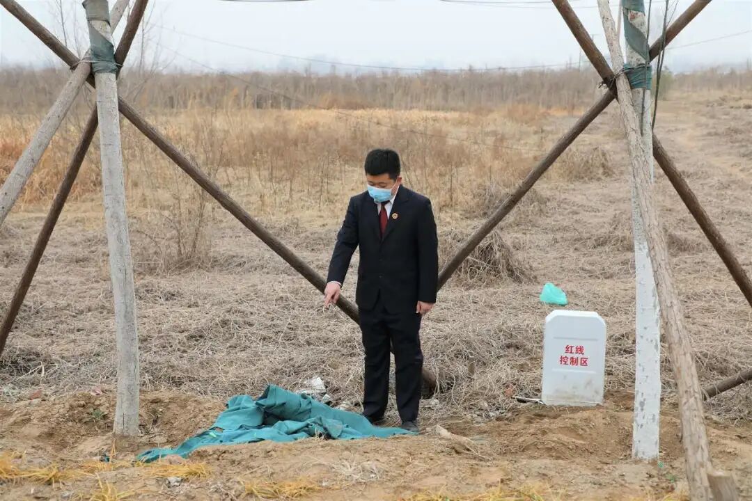 图为廊坊市永清县检察院工作人员在田间实地调查。