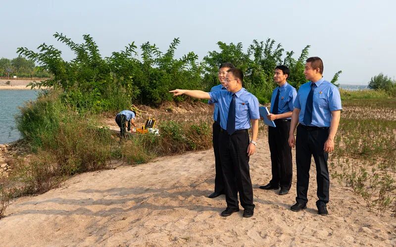 石家庄市人民检察院办案人员对滹沱河围堰影响防洪线索进行现地勘查。