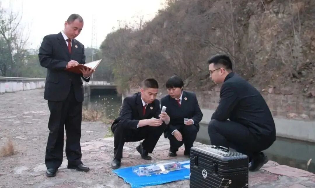 井陉县检察院干警实地踏查对水样进行检测。